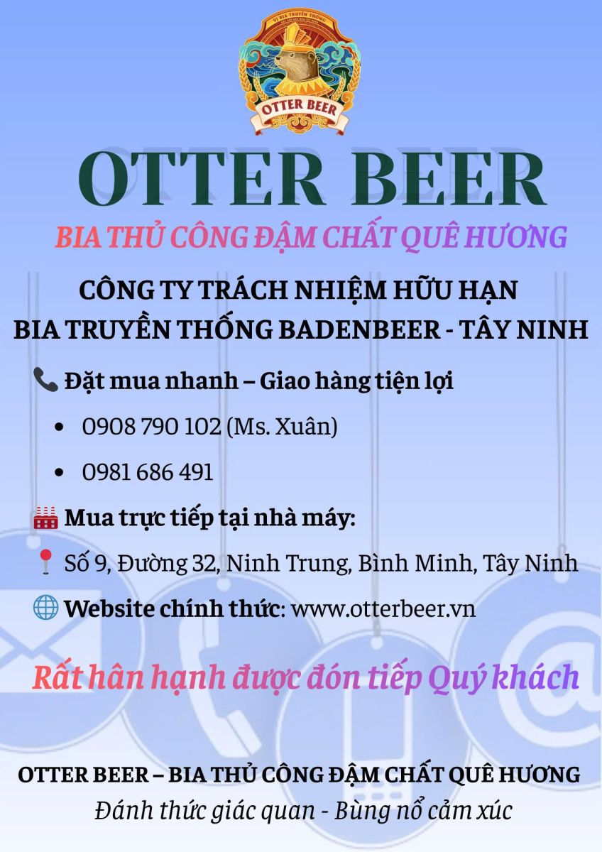 Chào mừng quý khách đến tham quan nhà máy "Otter Brewery" Số 9, Đường số 32 Bời Lời, Khu phố Ninh Trung, Phường Bình Minh, Tỉnh Tây .